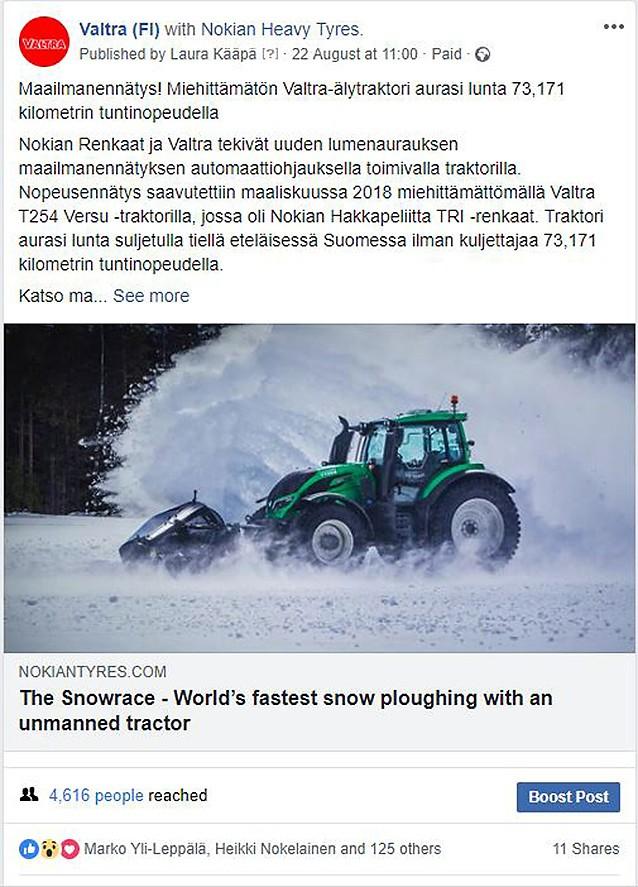 The same values apply for Valtra in social media than for the entire brand. Honesty and integrity are among the most important of these values.