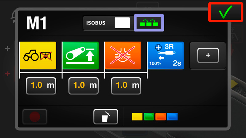 Valtra SmartTouch offers the easiest headland management system. With Auto U-Pilot, you can configure your sequence by recording while driving or programming it when stationary using the 9” touch screen. The M1, M2 and M3 buttons can be programmed for three completely different sequences - which can manage up to 24 operations each. All settings are saved in the appropriate profile (e.g. ploughing).
